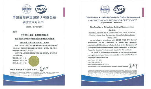 中科世生秉承“只做專(zhuān)業(yè),專(zhuān)注做好”的發(fā)展理念,早在2017年就先后通過(guò)中國(guó)計(jì)量認(rèn)證(CMA)和中國(guó)合格評(píng)定國(guó)家認(rèn)可(CNAS)資質(zhì)認(rèn)證認(rèn)可,成為國(guó)內(nèi)唯一獲狂犬病中和抗體“雙資質(zhì)”認(rèn)證的單位,且該資質(zhì)也被國(guó)際實(shí)驗(yàn)室認(rèn)可合作組織(ILAC)所認(rèn)可。